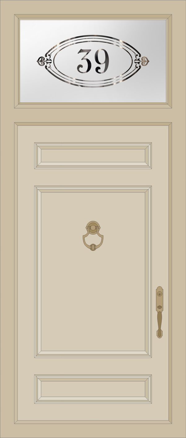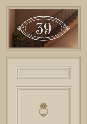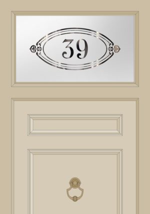 Elevate your home’s identity with the HN9 design from our House Names & Numbers collection. This design can be customized to include your house number. In this instance, the etched glass design has been created to suit a transom lite’s typical glass shape. When ordered, we will tailor the design with your bespoke glass sizes in mind to ensure it’s a perfect match for your transom window. If you’re unsure how to find your glass sizes, view our measuring guide.