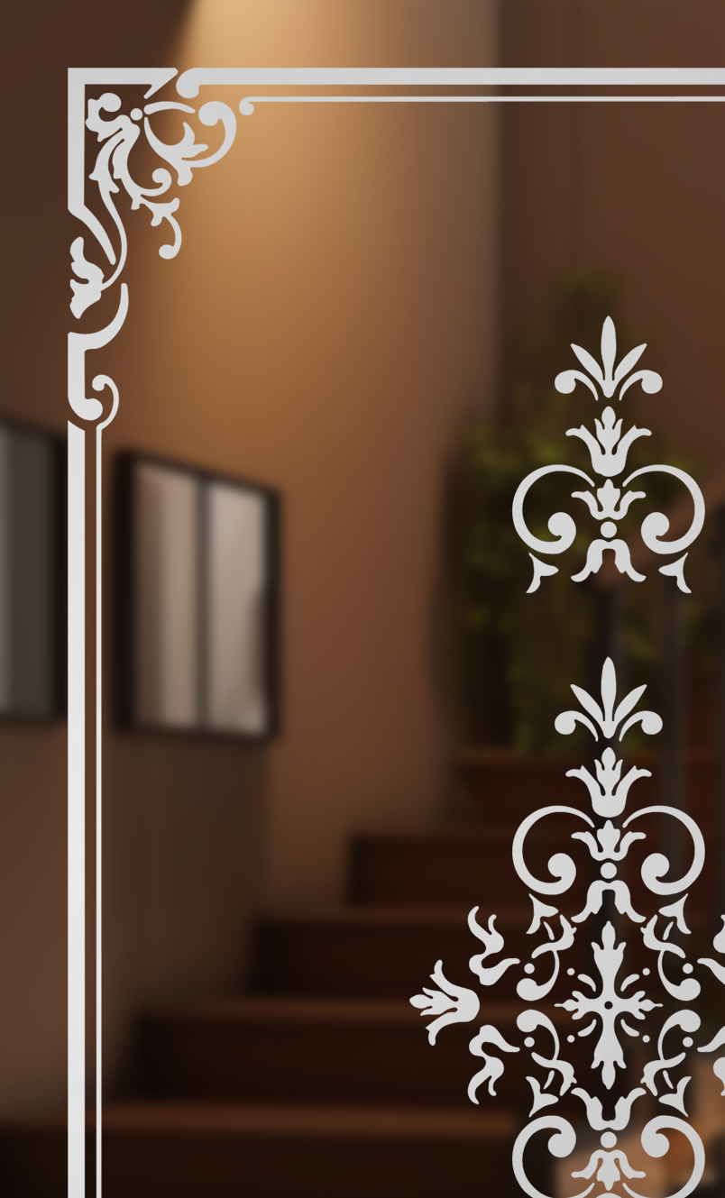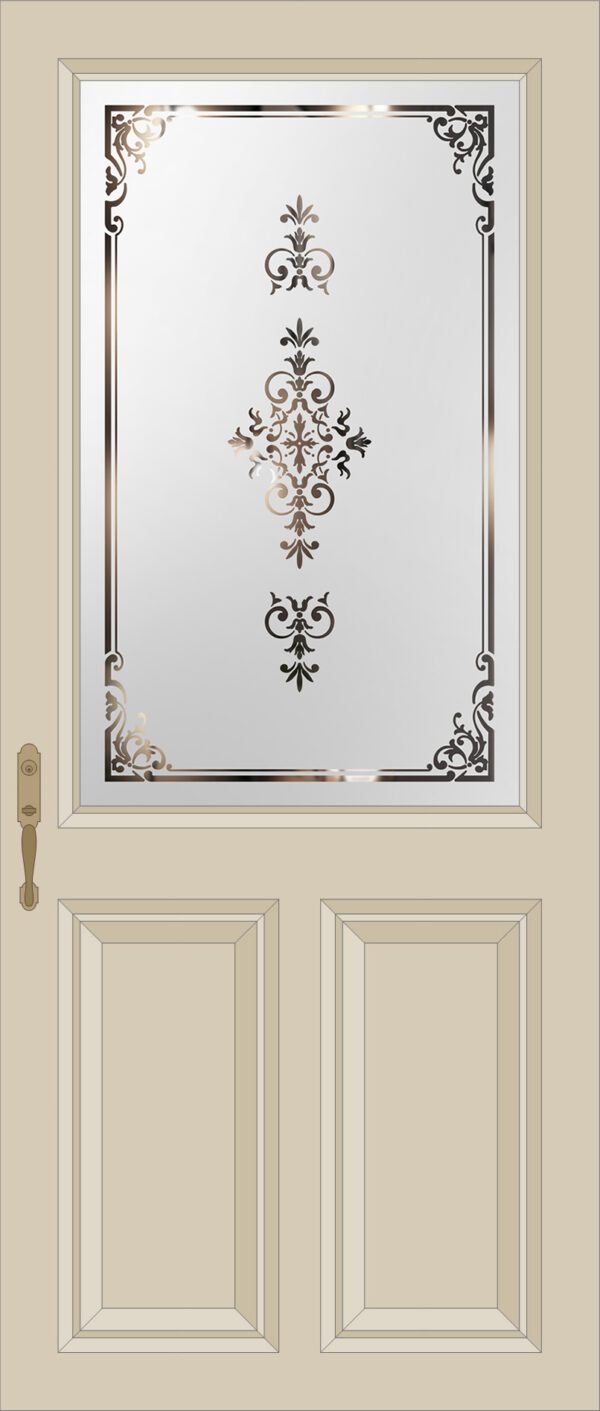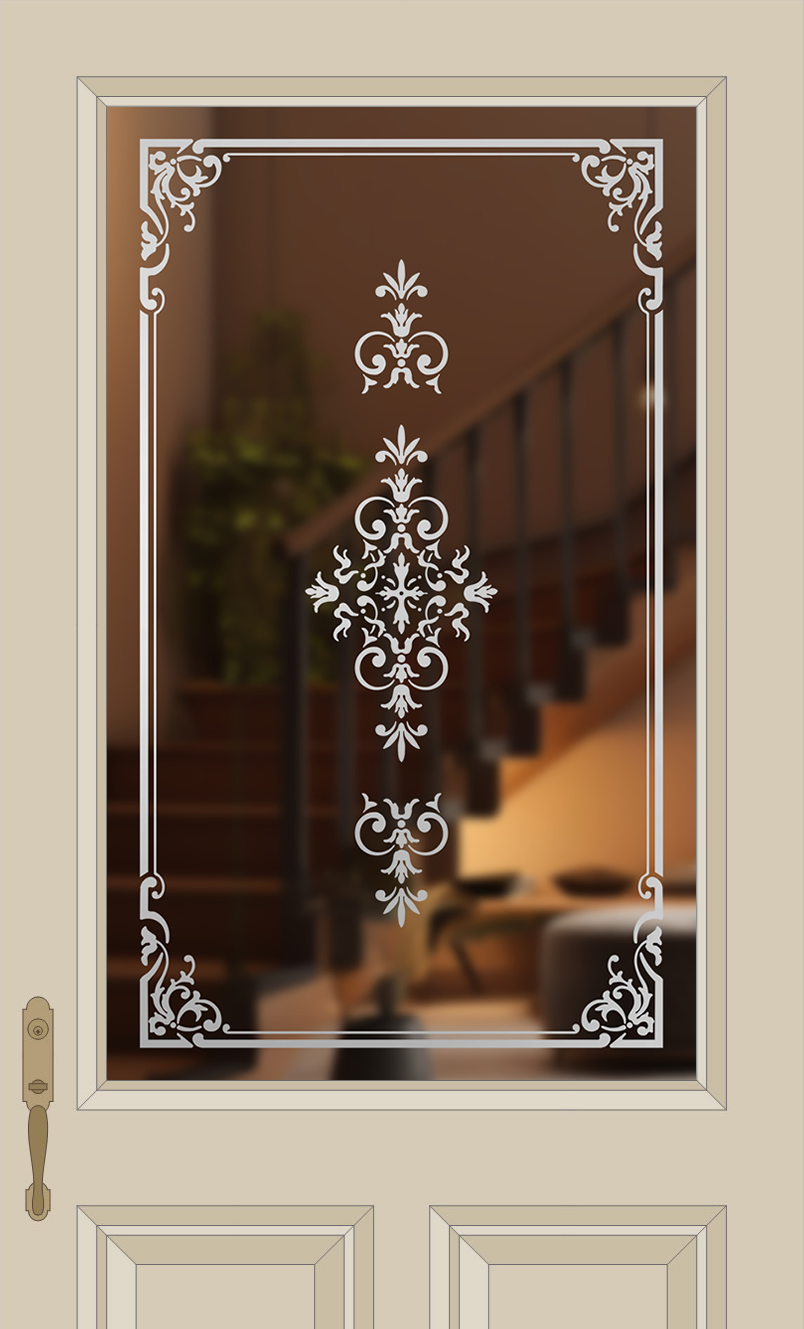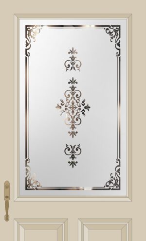 Add a touch of elegance to your home with the Regency design from our Traditional collection. In this instance, the etched glass design has been adapted to suit a half lite door’s typical glass shape. When ordered, we will tailor the design with your bespoke glass sizes in mind to ensure it’s a perfect match for your door. If you’re unsure how to find your glass sizes, view our measuring guide.