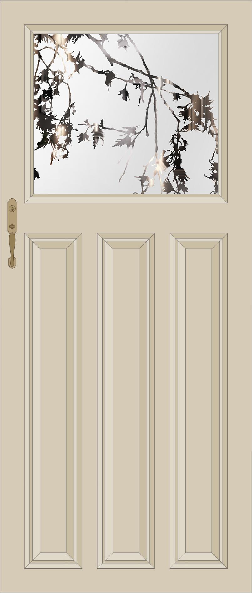 The Sycamore Leaves design captures a snapshot of nature in an etched glass panel and forms part of our Shadows of Nature collection. This collection celebrates the beauty of nature found throughout our world by recognizing it as a piece of etched glass art for your home. This design has been created to be the perfect addition to any third lite door, whether interior or exterior.