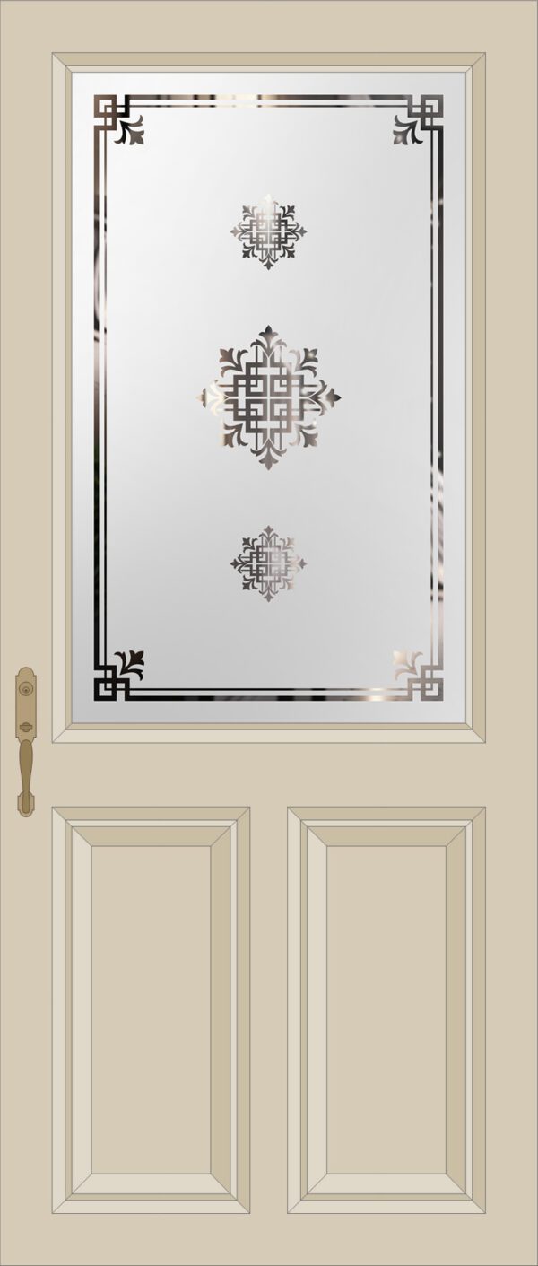 Add a touch of elegance to your home with the Monarch design from our Traditional collection. In this instance, the etched glass design has been adapted to suit a half lite door’s typical glass shape. When ordered, we will tailor the design with your bespoke glass sizes in mind to ensure it’s a perfect match for your door. If you’re unsure how to find your glass sizes, view our measuring guide.