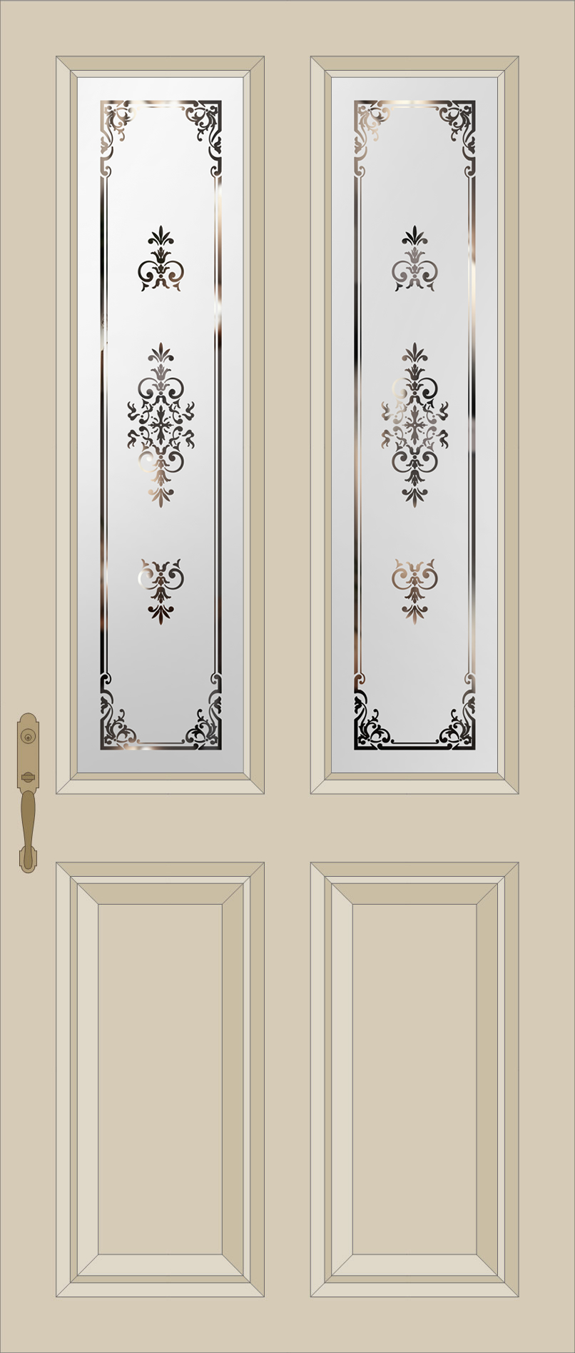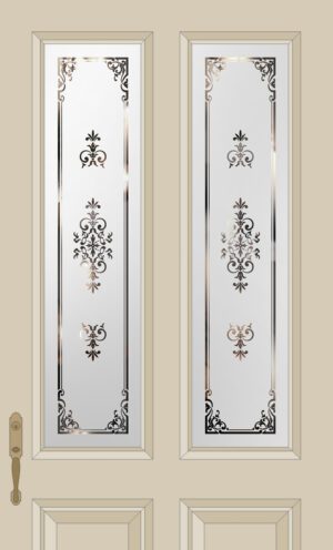 Add a touch of elegance to your home with the Regency design from our Traditional collection. In this instance, the etched glass design has been adapted to suit a split lite door’s typical glass shape. When ordered, we will tailor the design with your bespoke glass sizes in mind to ensure it’s a perfect match for your door. If you’re unsure how to find your glass sizes, view our measuring guide.