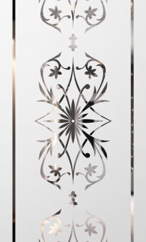 Note: The design contains etched sections and clear sections, any color you may see in the design is simply the background behind the glass.