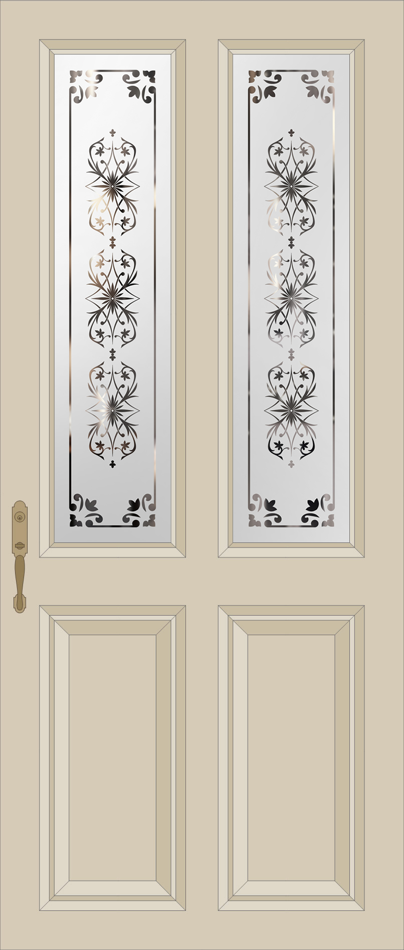Add a touch of elegance to your home with the Windsor design from our Traditional collection. In this instance, the etched glass design has been adapted to suit a split lite door’s typical glass shape. When ordered, we will tailor the design with your bespoke glass sizes in mind to ensure it’s a perfect match for your door. If you’re unsure how to find your glass sizes, view our measuring guide.