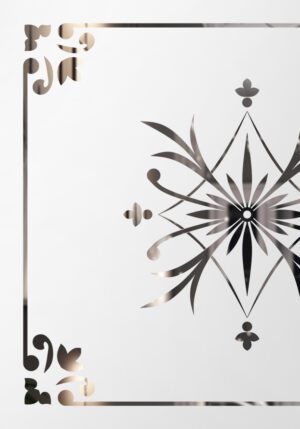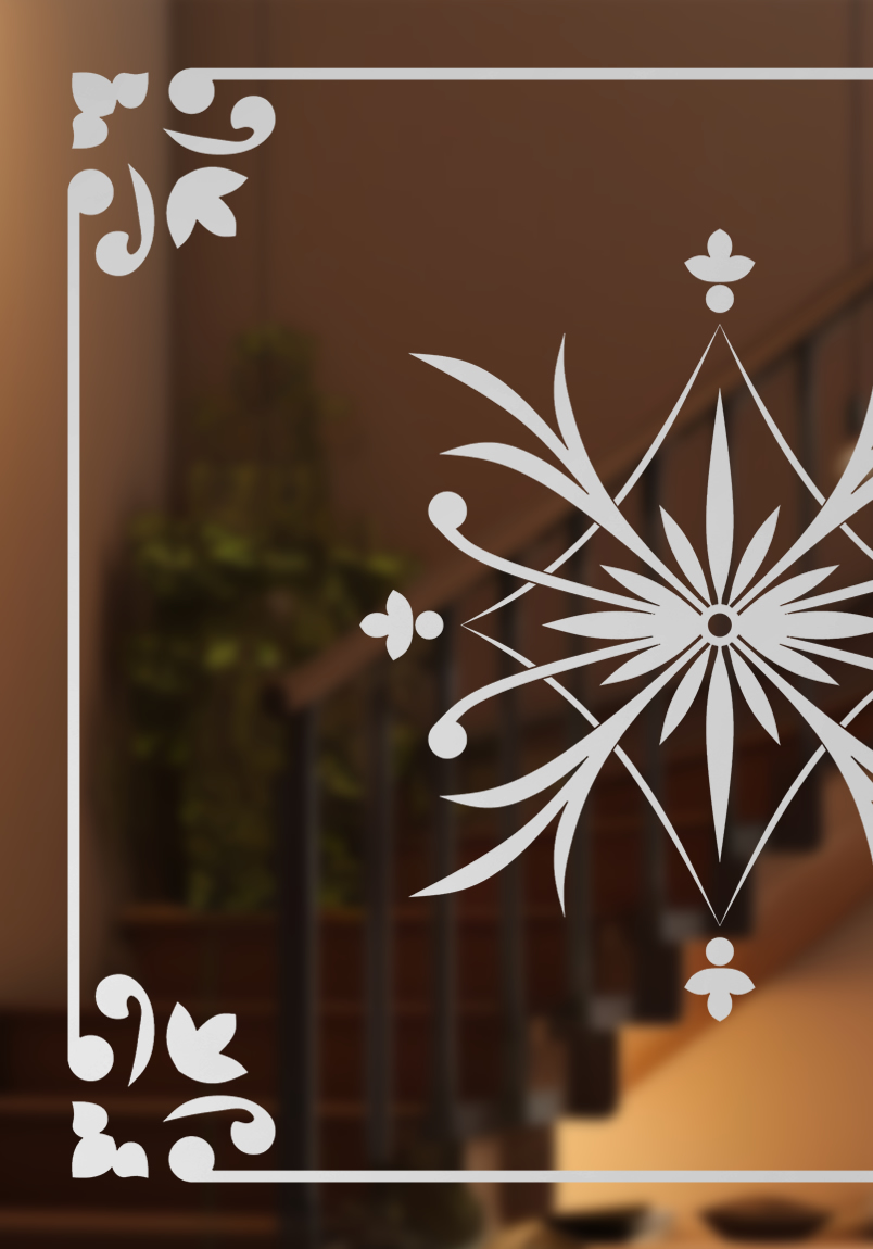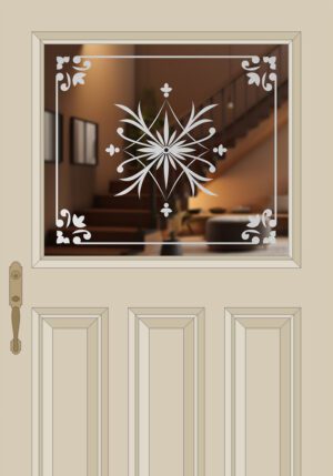Note: The design contains etched sections and clear sections, any color you may see in the design is simply the background behind the glass.